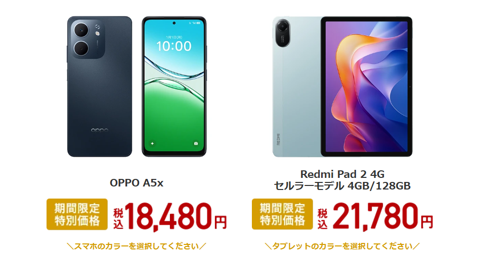 | Redmi Pad 2 4G セルラーモデル 4GB/128GB | 21,780円 |