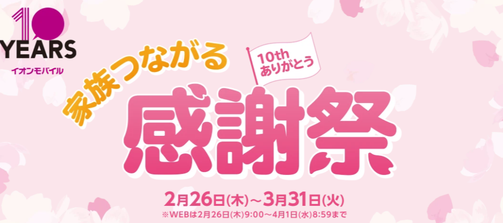イオンモバイル「家族つながる感謝祭」キャンペーン開催中・2026/3月度紹介コードも記載中