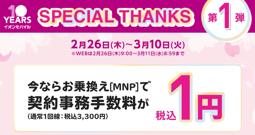 また3月10日までは、乗り換え契約事務手数料が無料になります、新規契約の人はエントリーパッケージ+照会コードでも事務手数料が実質無料(下記参照)