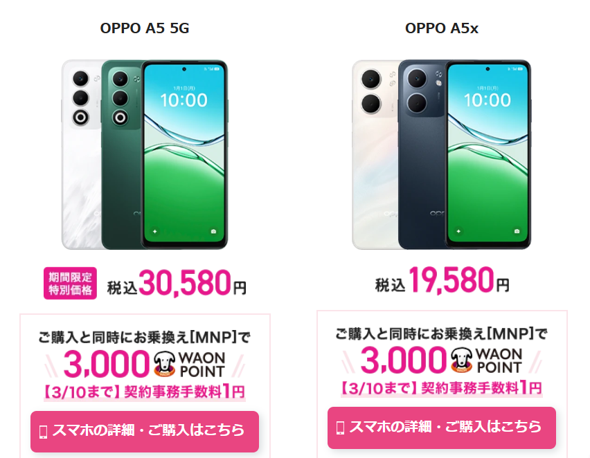 | OPPO A5x | 19,580円 | 全員対象 |