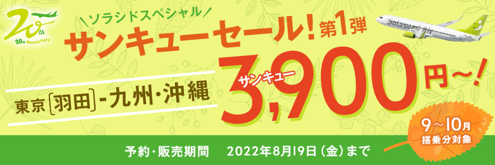 ソラシドエアからソラシドスペシャルキャンペーンを開催中です