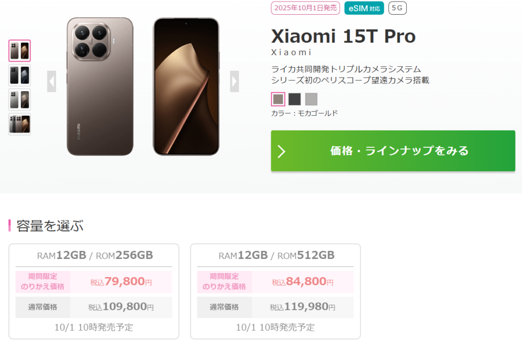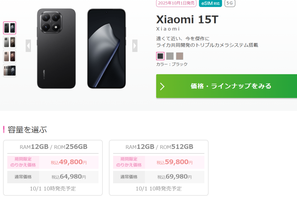 【2025/10/01 Xiaomi Xiaomi 15T シリーズ追加】