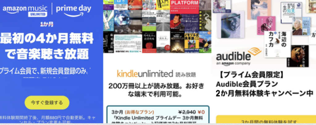 Amazon Music Unlimited・Kindle Unlimitedは常に常用してます、特にKindle Unlimitedの三か月無料はかなり大きい