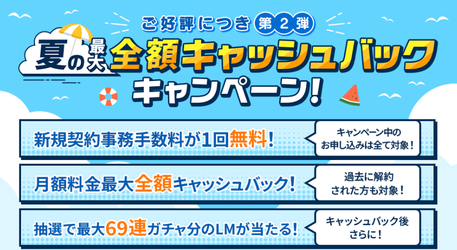 ただし回数は期間中一度だけです、しかし過去解約者も回線追加も対象という太っ腹企画