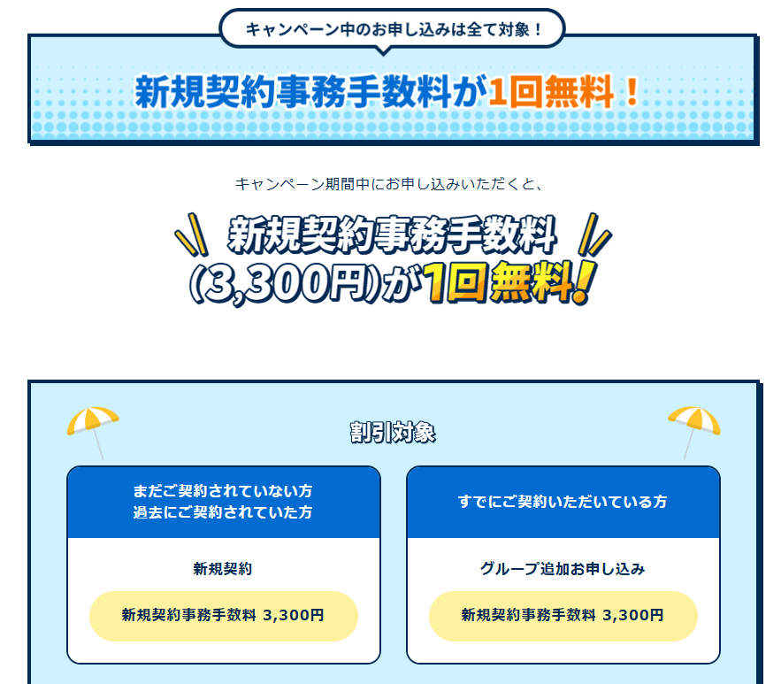 • キャンペーン中に新規契約事務手数料の割引を受けていない