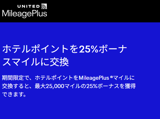 ユナイテッド航空(UA)でホテルポイントから30%増量キャンペーン概要