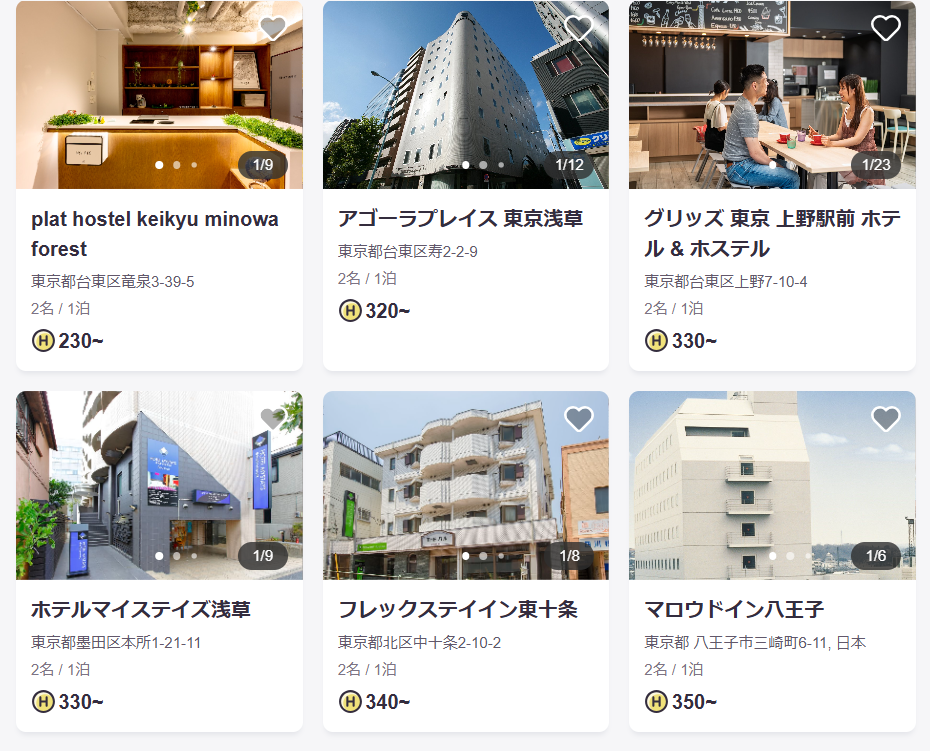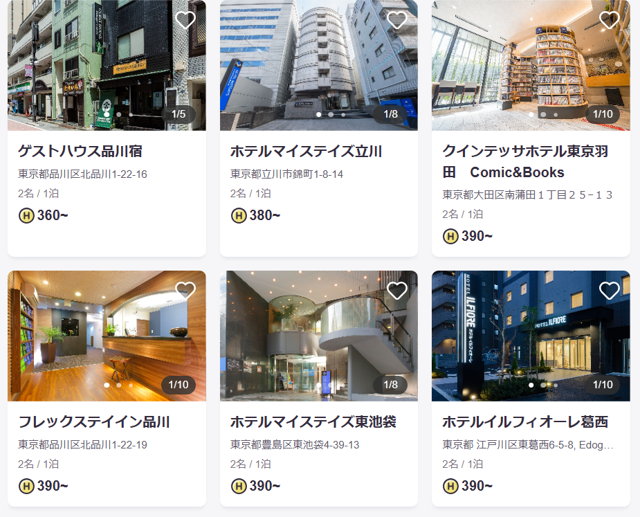もちろん他のブランドも多数、ホテル代が高騰している東京でも2名宿泊で以下のコインから宿泊出来ます