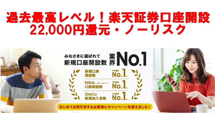 過去最高レベル!楽天証券口座開設22,000円還元・ノーリスク
