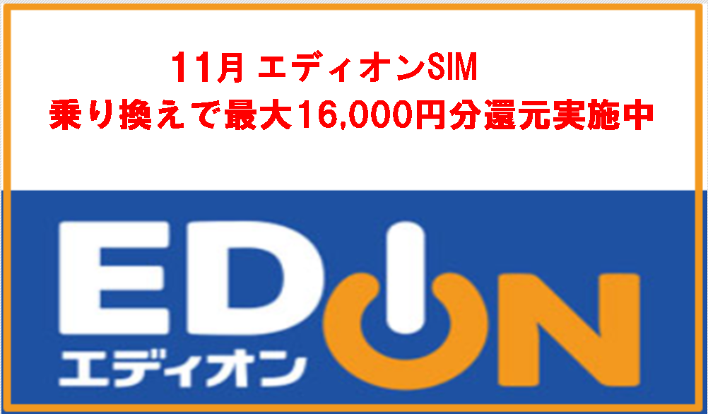 11月度エディオンSIM 乗り換えで最大15000円分還元実施中