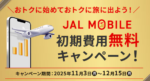 JALが運営する「JALモバイル」から契約事務手数料3,300円が無料になるキャンペーンを開催中です。無料になるのは一名義1回線のみです。期間は12月15日まで JALモバイルはiijmioがベースで回線網はドコモ・au … 続きを読む JALモバイル初期費用3,300円が無料キャンペーン