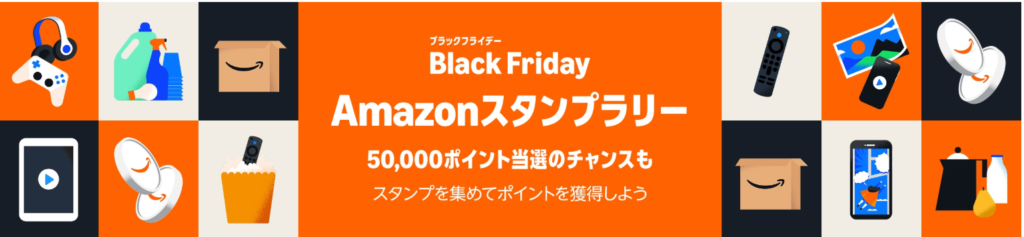 Amazon年に一度のブラックフライデーが11/24(月)0:00~12/1(月)23:59まで開催されます、先行セールは11/21(金)0:00~先行セールも開催中、もちろんポイントアップ対象
