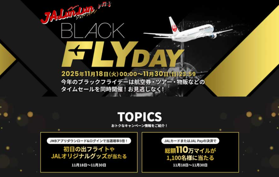 JALブラックフライデー開催 年末年始も対象の国内線タイムセールや減額マイルも