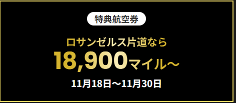 また国際線は、ロサンゼルス片道18,900マイルのみ情報が出てます、他も対象なら嬉しい