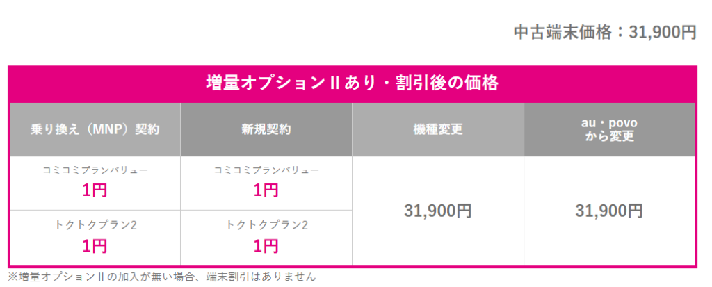 事務手数料は3,850円かかりますが、中古価格は買取で28,000円前後なのでそこそこお得、機種変更はオススメしない。
