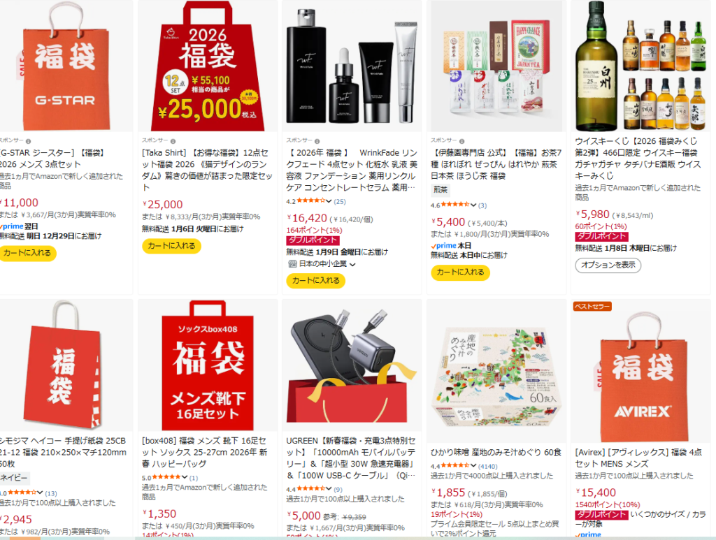 福袋なども販売中ですが、初売りセールが始まってから購入した方がお得です