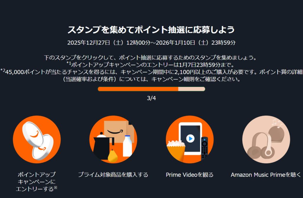 Amazon初売りセール エントリーで最大6000ポイント還元、更にスタンプラリーで最大45,000ポイントが当たる