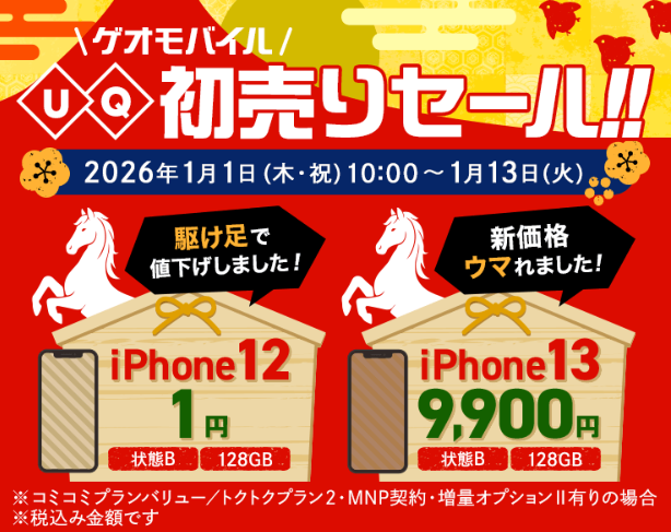 GEOモバイル「初売りセール」でiPhone12・13が本体1円~で投げ売り中