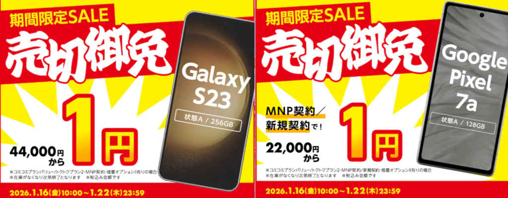 GEOモバイル「売切御免セール」でGalaxyS23やGooglePixel7aが一括1円~