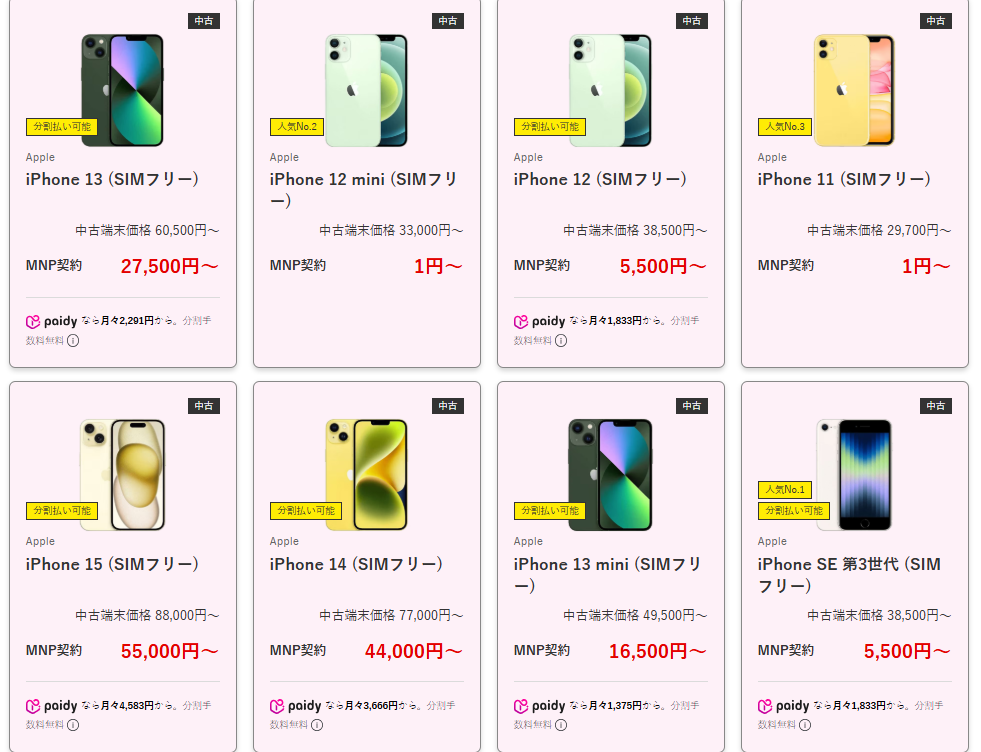 とりあえずiPhoneをなんでもいいから欲しい人や、サブ機用・低学年のお子さん用など使い道は沢山ありますし、iPhoneなら各社下取り価格は買値以上です。