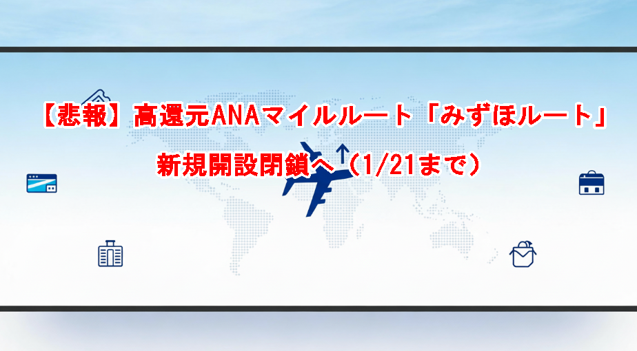 【悲報】高還元ANAマイルルート「みずほルート」新規開設閉鎖へ(1/21まで)