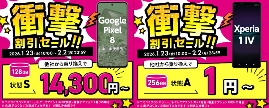 ゲオモバイルから衝撃割引期間限定セール開催中、他社からの乗り換えでXperia 5 Ⅳ、Xperia 1 Ⅳ、Google Pixel 8が安い