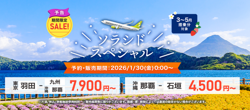 ソラシドエア&AIRDOセール開催!片道4500円~で九州・北海道へ、GWも対象