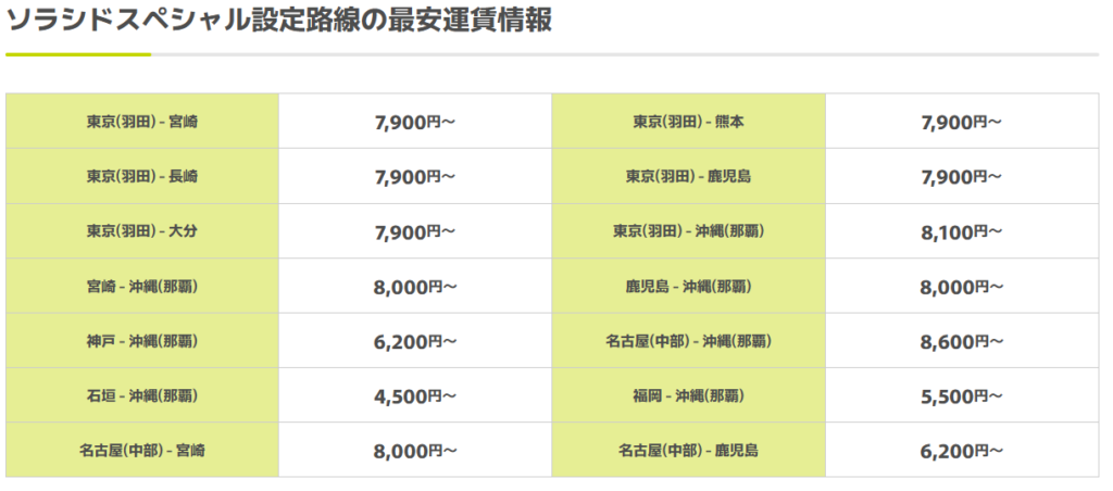 ソラシドエア「ソラシドスペシャル」詳細
