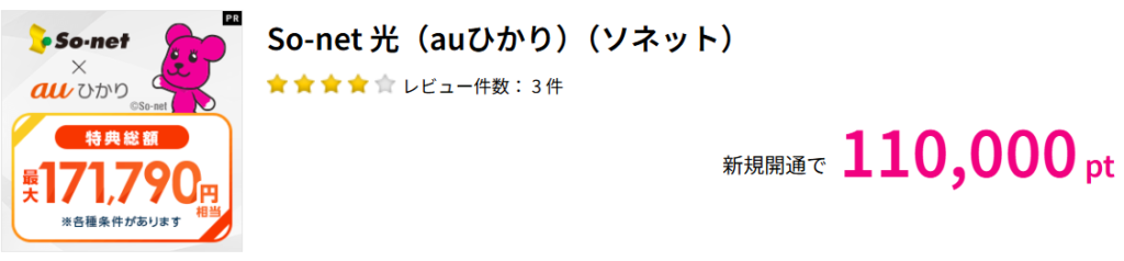 現在もSo-net 光(auひかり)は2026/12/10現在も110,000円分還元、僕も同じ還元額でした。