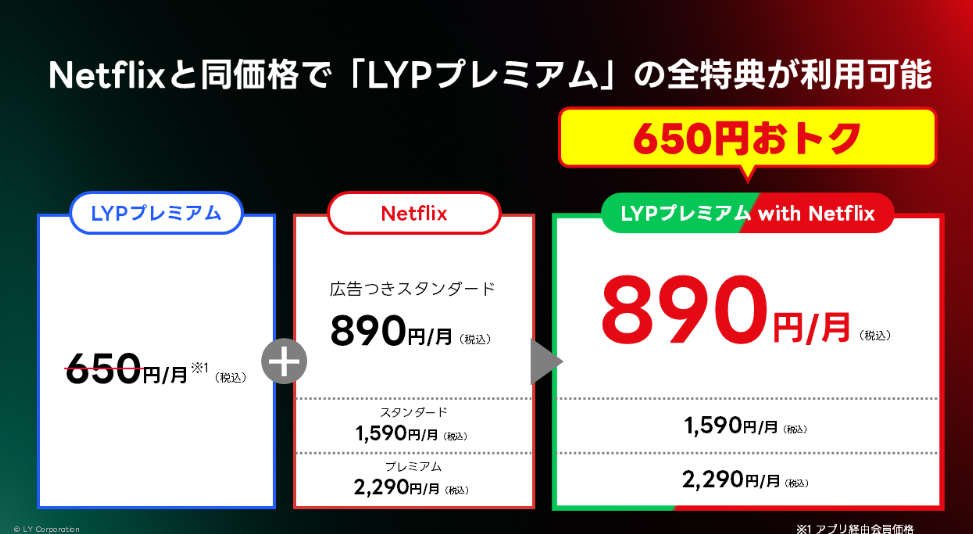 LYPプレミアムとNetflixのセットプランが登場します、新プランLYPプレミアム with Netflixが提供されNetflix単体と同額でLINE対象スタンプ使い放題