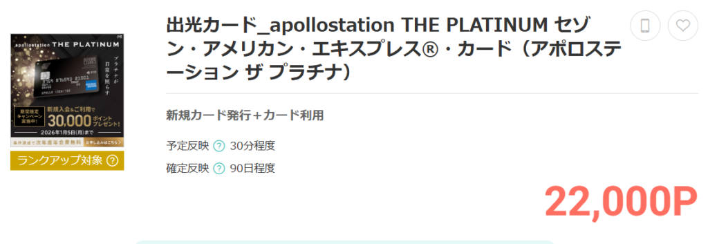 apollostation THE PLATINUMカード側のキャンペーン 最大30,000ポイント還元