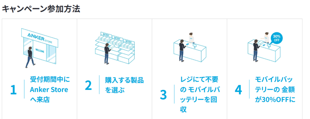 Ankerは3月31日までモバイルバッテリーの買い替えキャンペーンを実施中です、手持ちのAnker製モバイルバッテリーを下取り(回収)することでAnkerの、公式ストア・直販店・アプリから購入するモバイルバッテリーが30%OFF