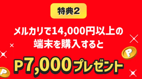 更にメルカリで14,000円以上のスマホを購入すると、7000ポイント還元