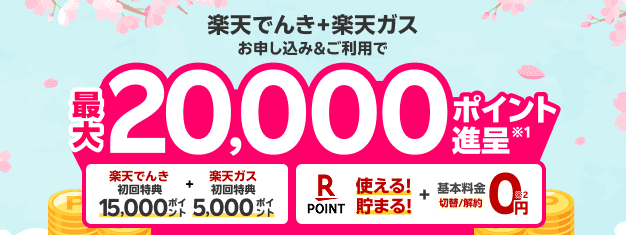- ・ 楽天ポイントの進呈は、楽天でんきのサービス利用開始月を0カ月目として、6カ月目の月末頃までに行います。