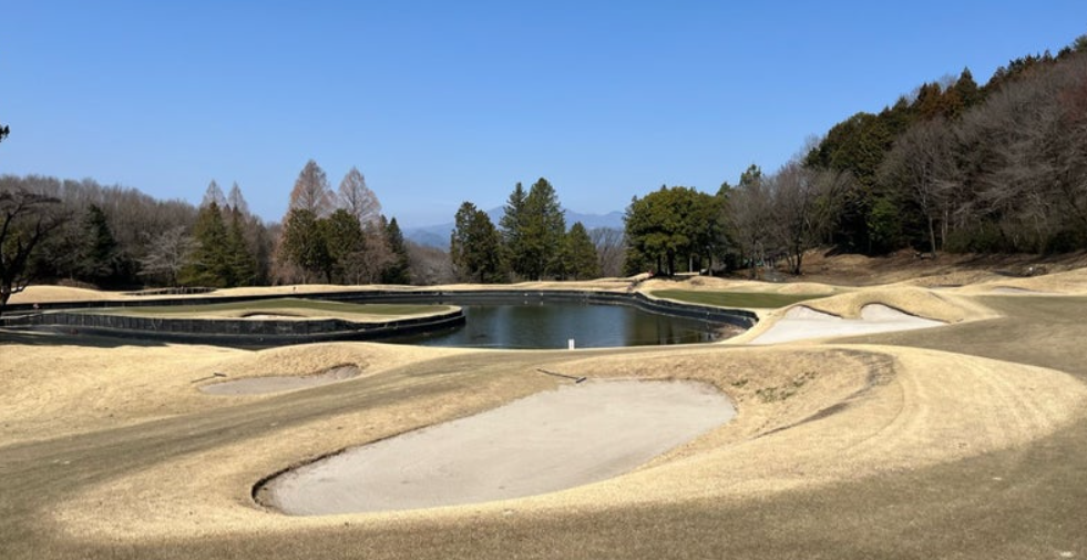 コースは基本平らなコースですが、とにかくバンカー&池のハザードが巧みに配置されていて、難易度はかなり高い