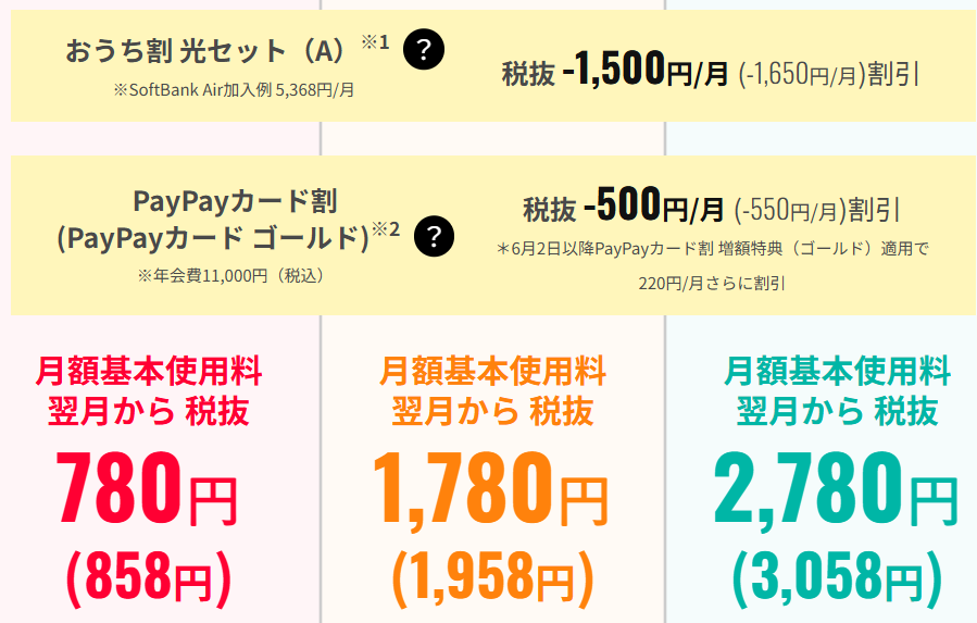 おうち割とPayPayカード割りを適用出来れば、かなり安くなります。